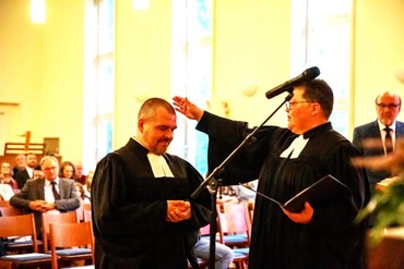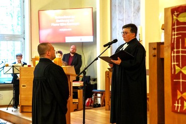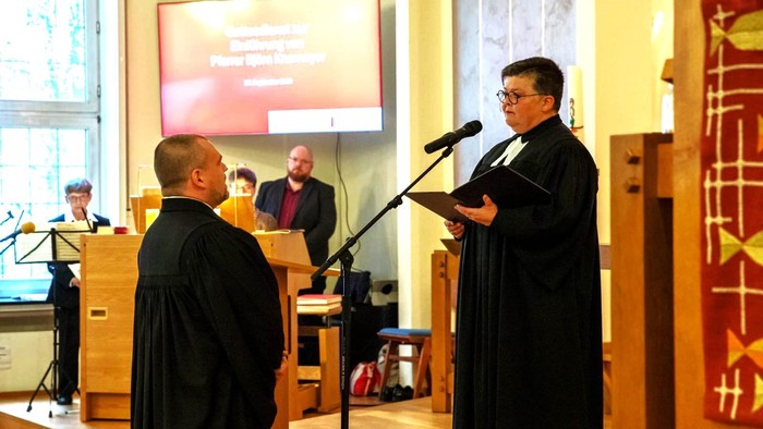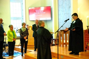 Superintendentin Claudia Reifenberger führt Björn Knemeyer in die 2. Pfarrstelle der Petrusgemeinde ein.