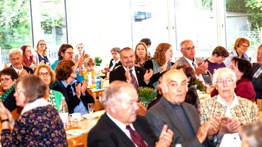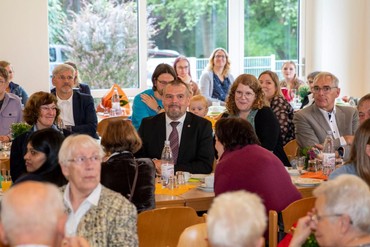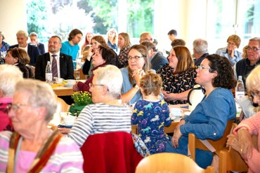 Im Anschluss an den Gottesdienst traf sich die Gemeinde im Luthersaal zu einem Empfang. Der stellvertretende Oberbürgermeister der Stadt Herne, Kai Gera, begrüßte den neuen Pfarrer und seine Frau Nina Knemeyer auf das Herzlichste und richtete die Grüße des Rates der Stadt Herne und des Oberbürgermeisters Dr. Frank Dudda aus. Er gab seiner Hoffnung Ausdruck, dass die Petrusgemeinde im Herner Süden weiter mit ihrer Gemeindearbeit für alle Generationen, insbesondere für Kinder, Jugendliche und Familien, in die Stadtgesellschaft hineinwirken werde als Gemeinde mit Ausstrahlungskraft, auch mit ihrer Diakonie.