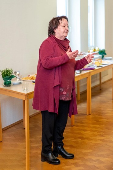 Angelika Bohnenkamp aus Knemeyers Vikariatsgemeinde Steinhagen spricht ein Grußwort.