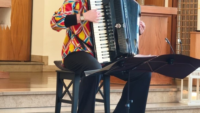 Ein besonderer Akzent lag auf dem künstlerischen Wirken von Andrea Knefelkamp-West, die den Konzertnachmittag mit großem Können und spürbarer musikalischer Präsenz prägte. Ihr Spiel auf dem Konzertakkordeon überzeugte durch Ausdrucksstärke, technische Souveränität und eine sehr feine Gestaltung der einzelnen Werke. Zugleich gelang es ihr in der Moderation, das Publikum aufmerksam mitzunehmen und auf ansprechende Weise durch das Programm zu führen. Gerade diese Verbindung aus musikalischer Qualität und kenntnisreicher, nahbarer Erläuterung machte den besonderen Reiz des Konzerts aus.