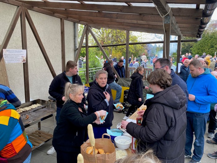 Für das leibliche Wohl war gesorgt: Getränke und Würstchen standen bereit und wurden rege nachgefragt. Das gemeinsame Verweilen am Feuer machte deutlich, wie wichtig solche Begegnungsräume für das Gemeindeleben sind.